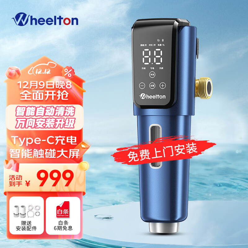 惠尔顿(WHEELTON) 前置过滤器全自动清洗全屋净水器家用反冲洗自来水过滤器P0063 智能自动万向安装 智能自动反冲价格:1599.00元!