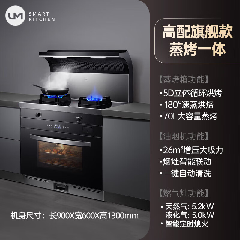 优盟(UM)集成灶蒸烤一体灶 家用自动清洗蒸箱烤箱一体机下排式侧吸环保灶烟灶套装UJ221(天然气)价格:4580.00元!