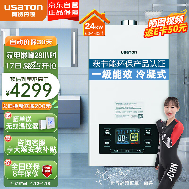 阿诗丹顿(USATON)一级能效 冷凝机 燃气壁挂炉天然气地暖锅炉采暖燃气热水器LL1PBD24-L2414S价格:4699.00元!