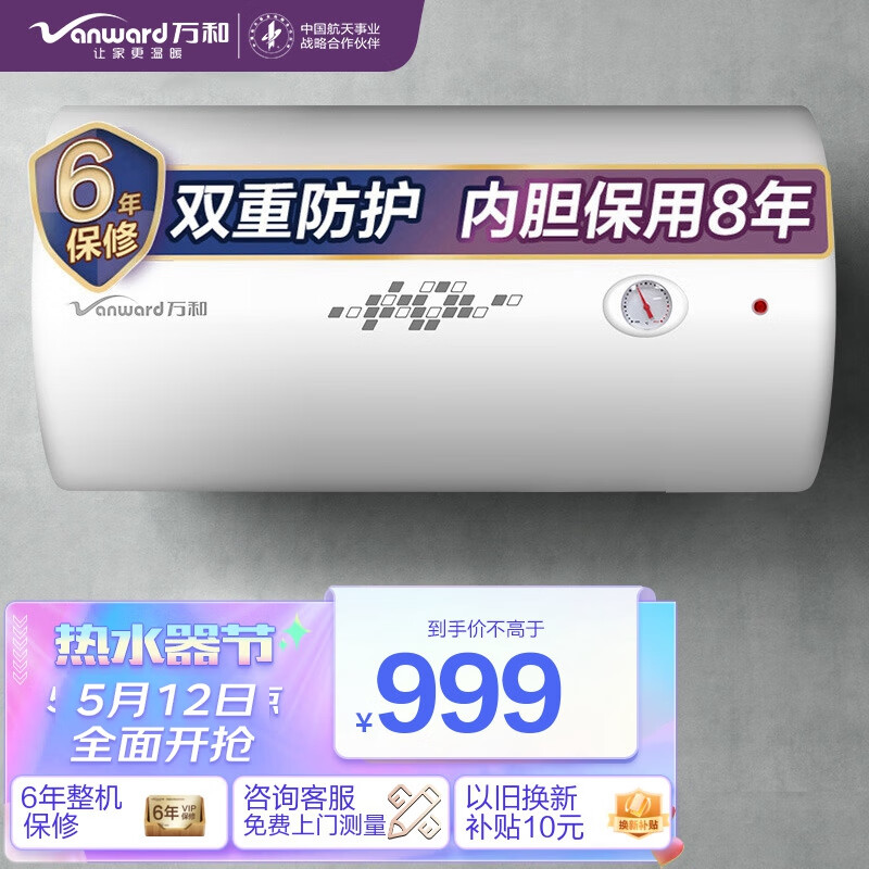 万和(Vanward)100升双防电盾 双重防护 温显型电热水器E100-T4-22价格:999.00元!
