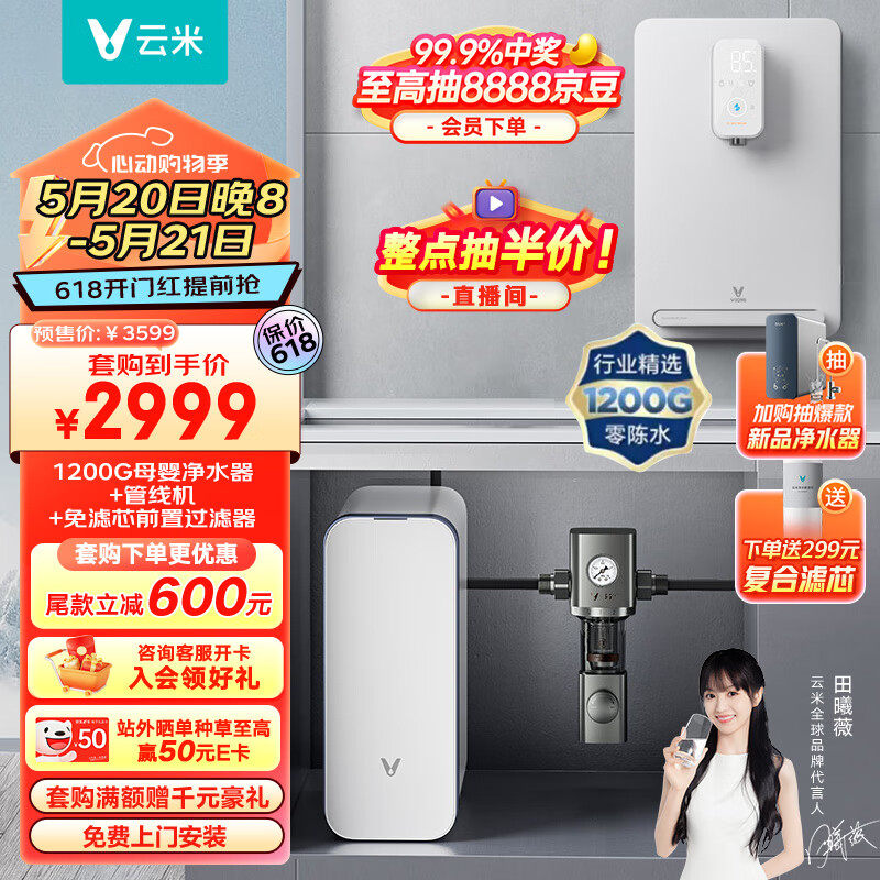 云米(VIOMI)Super Y 1200G全屋净水套装净水器+管线机MG2-B+前置过滤器VF4-A三件套家用直饮加热净水器净水机价格:3099.00元!
