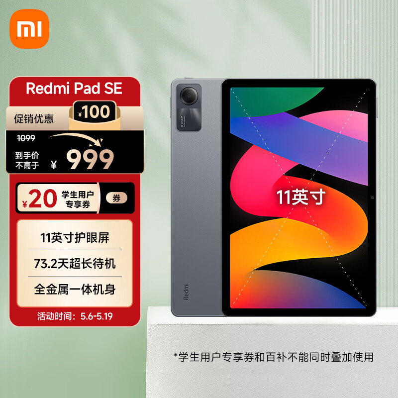 小米Redmi Pad SE红米平板 11英寸 90Hz高刷高清屏 8+128GB 娱乐影音办公学习平板电脑 深灰色小米平板价格:969.00元!