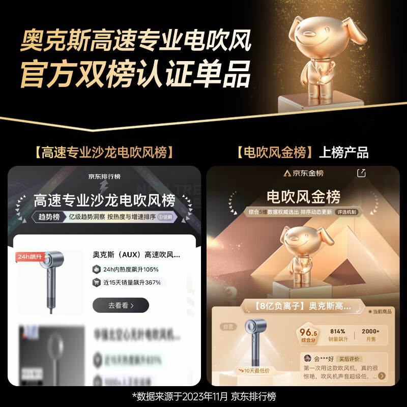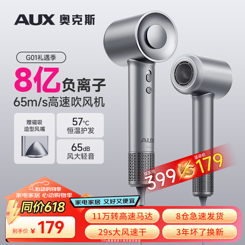 奥克斯(AUX)高速吹风机家用速干大风力电吹风负离子护发理发店专用大功率轻音吹风筒无叶电吹风机送男女生礼物价格:179.00元!