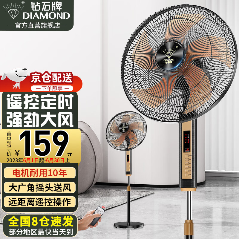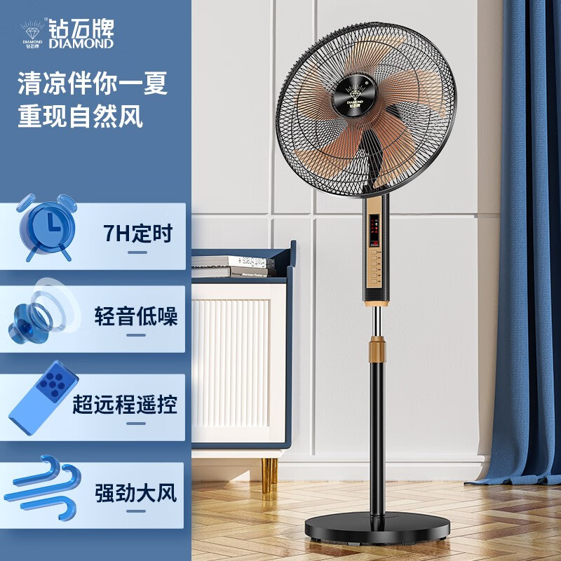 钻石牌(DIAMOND)电风扇家用落地扇办公室立式风扇客厅大风量定时遥控机械摇头风扇 16吋五叶【遥控款】价格:199.00元!