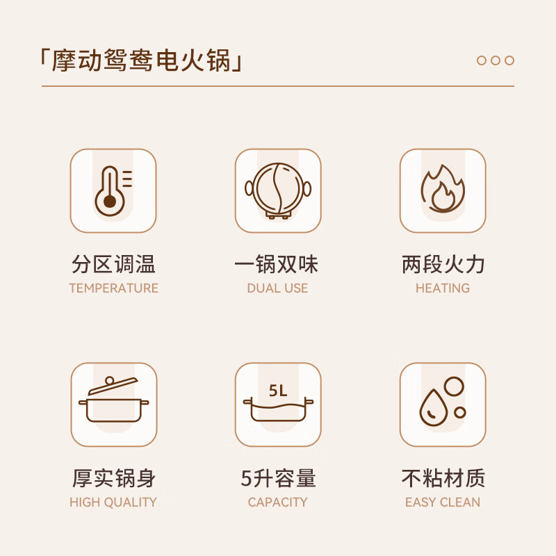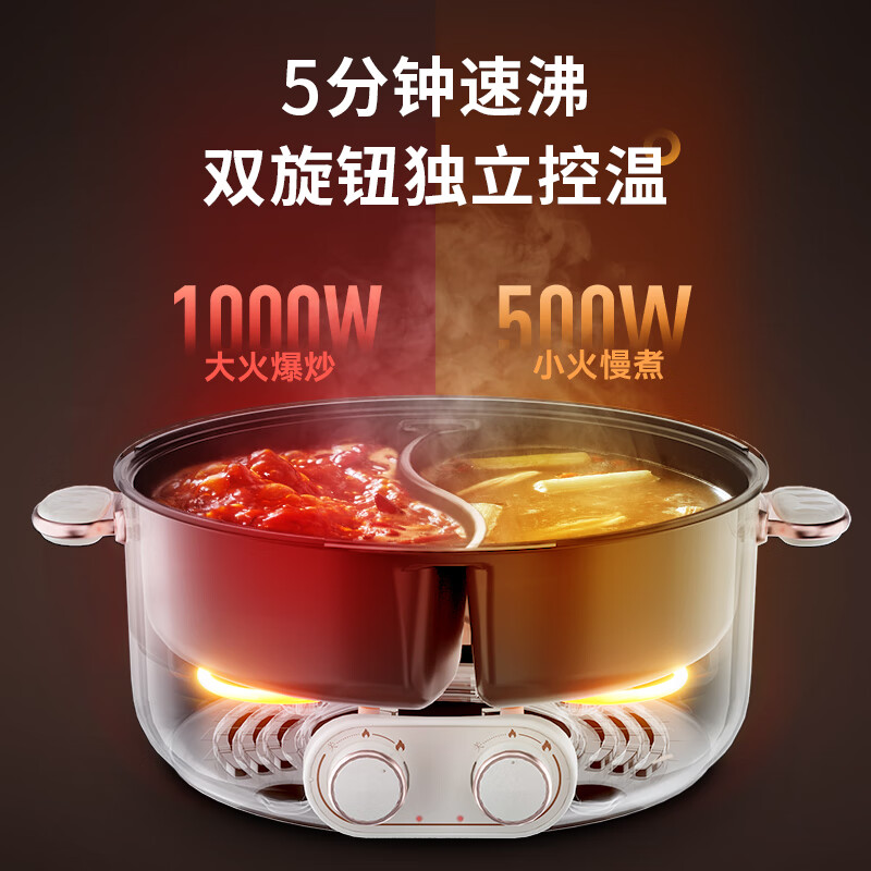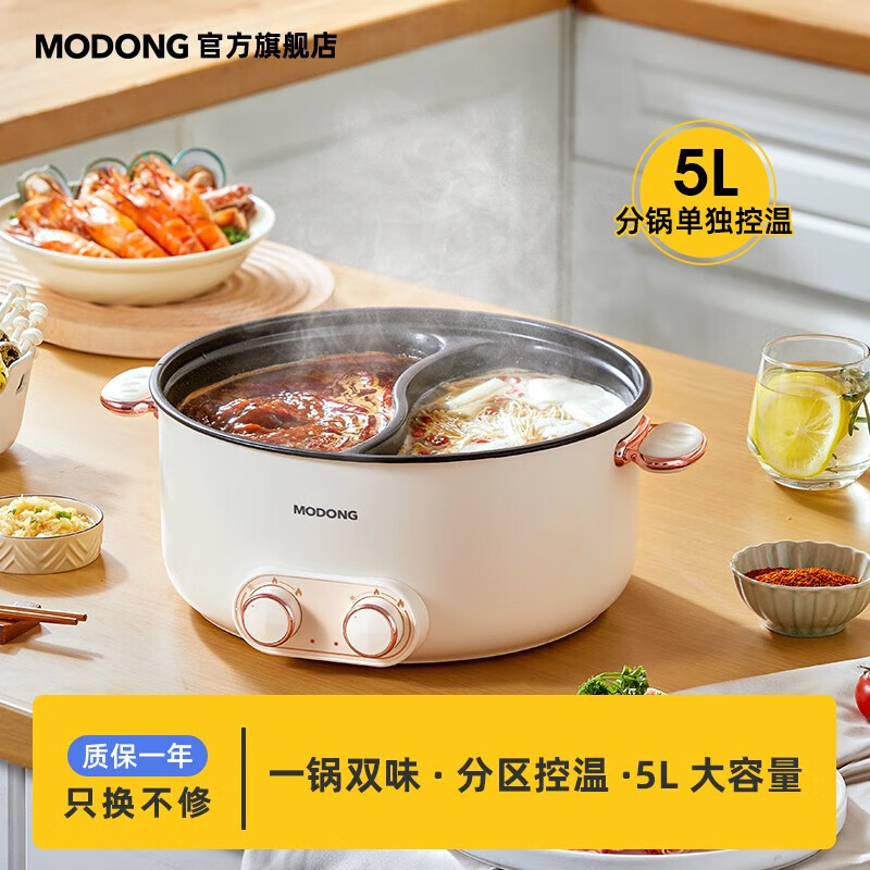 摩动鸳鸯电火锅多用途锅家用多功能电热锅多用途电煮锅5L不粘鸳鸯锅分区独立控温 MD-HGE34K价格:139.00元!