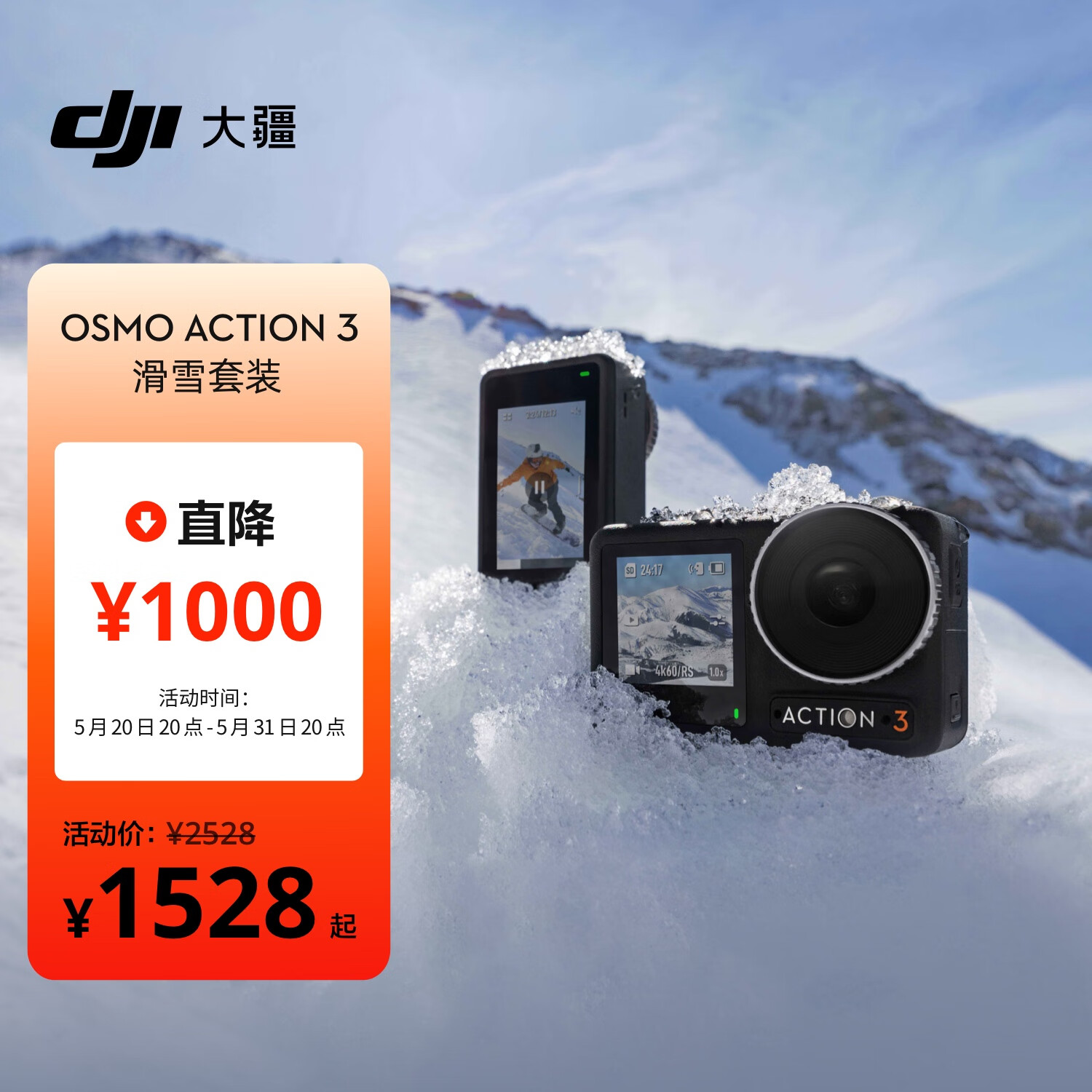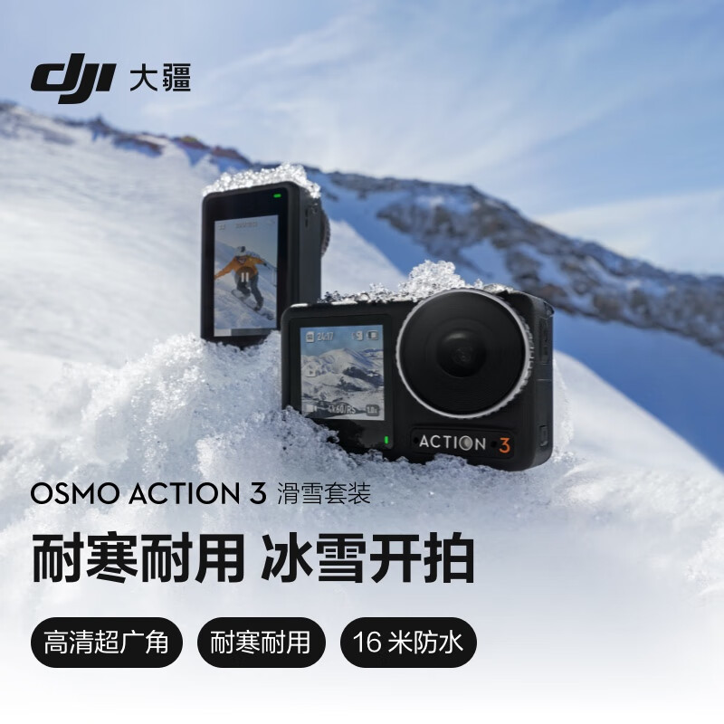 大疆 DJI Osmo Action 3 滑雪套装 运动相机 4K高清增稳户外Vlog滑雪摄像机+随心换1年版+128G内存卡价格:1731.90元!