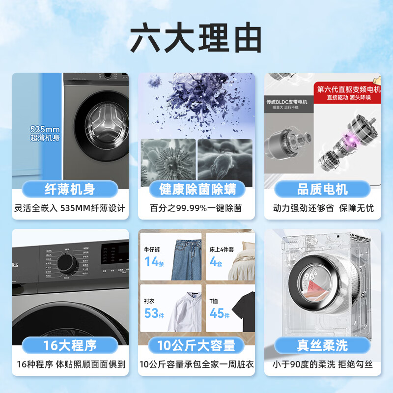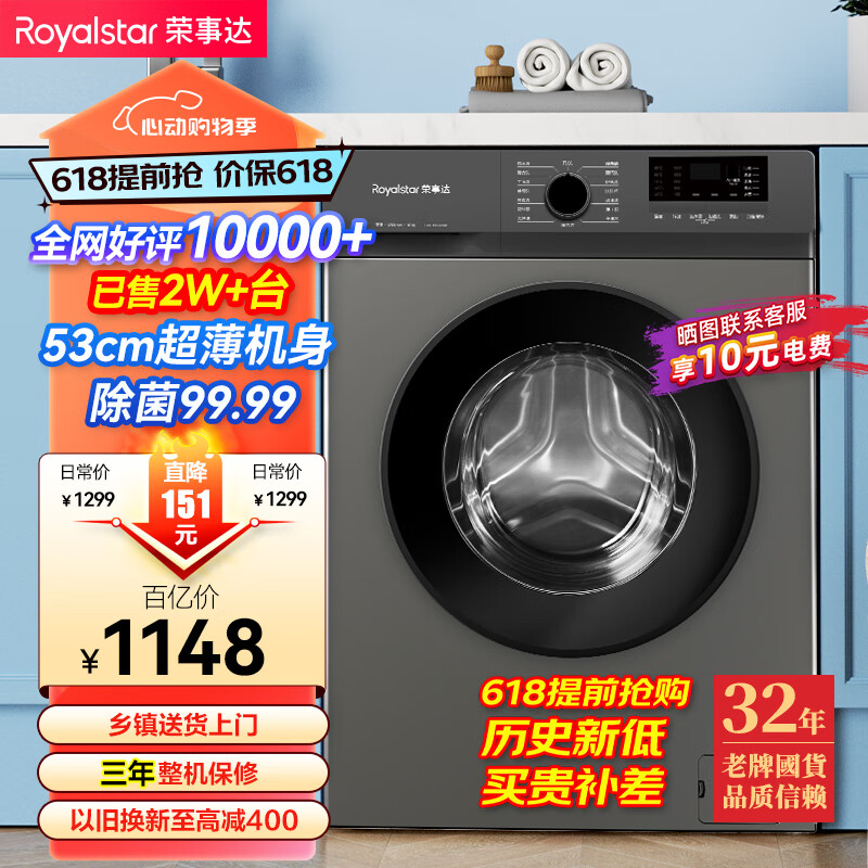 荣事达(Royalstar)洗衣机全自动滚筒10公斤变频除螨一级能效智能预约家用大容量洗衣机 以旧换新ERFC105020W价格:1148.00元!