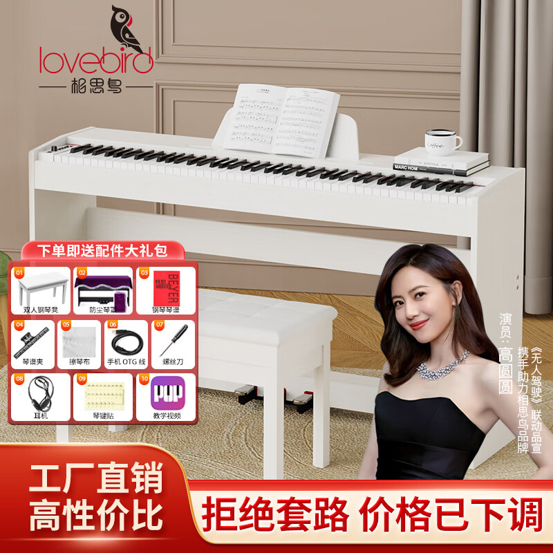 相思鸟电钢琴88键重锤数码钢琴智能初学者立式电子钢琴 带木架木纹白价格:1299.00元!