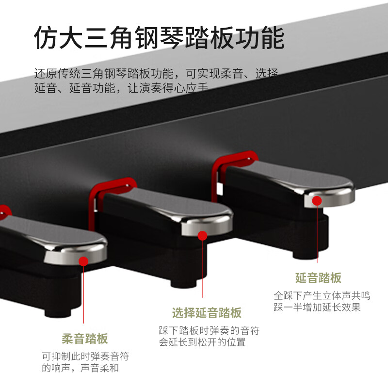 2、质感很好的一个电钢琴,按键的时候手感也不错,和真钢的区别不大,可以直接连接app弹奏,学起来很简单