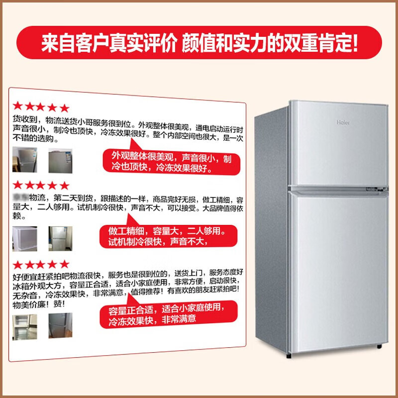 海尔(Haier)118升小型双门迷你冰箱 节能省电冷藏冷冻两门电冰箱 租房家用宿舍用小冰箱价格:799.00元!