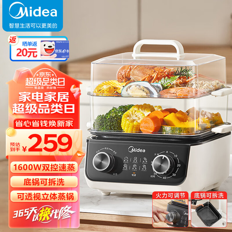 美的(Midea)电蒸锅 电煮锅 电火锅 多功能锅家用蒸包子锅 智能预约13升大容量蒸煮多用途锅MZ-ZGE272352C价格:249.00元!