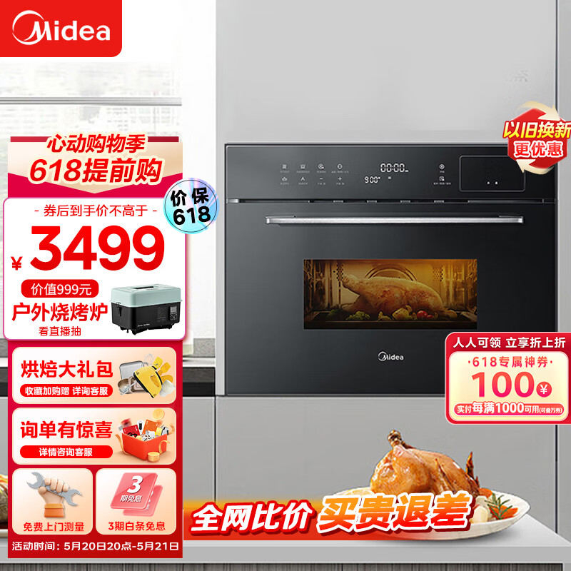 美的(Midea)R3J嵌入式微蒸烤一体机 APP操控微波炉蒸箱烤箱34L 家用多功能烘焙多重自净 京东小家BG3405W价格:3799.00元!