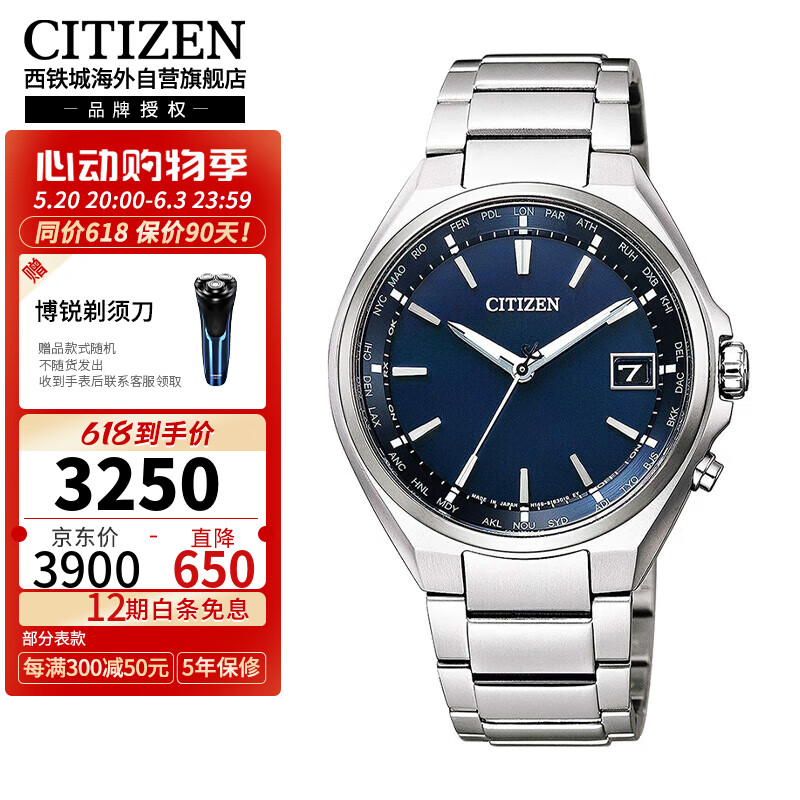 西铁城(CITIZEN)光动能多局电波舒博钛商务休闲日期男表CB1120-50L价格:3900.00元!