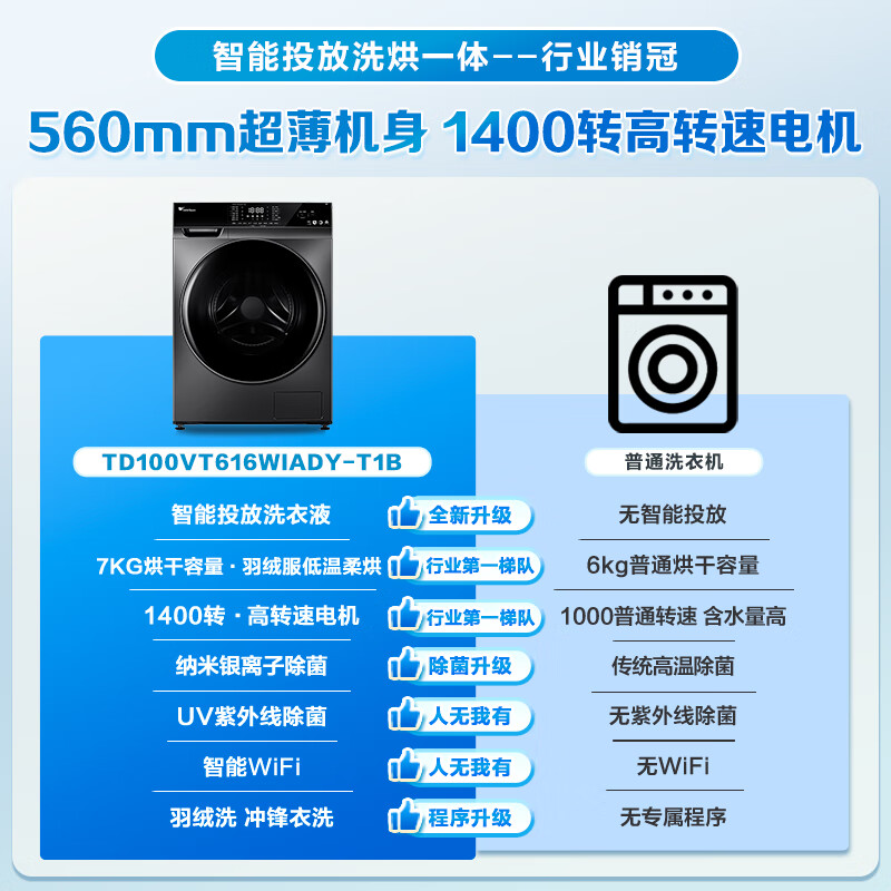 小天鹅TD100VT616WIADY-T1B配置参数: