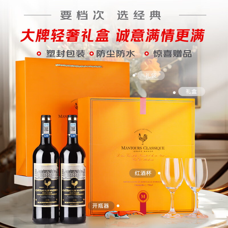 归星(GEOTHIM)法国原瓶进口干红葡萄酒750ml*2 曼妥思系列AOC红酒礼盒价格:228.00元!