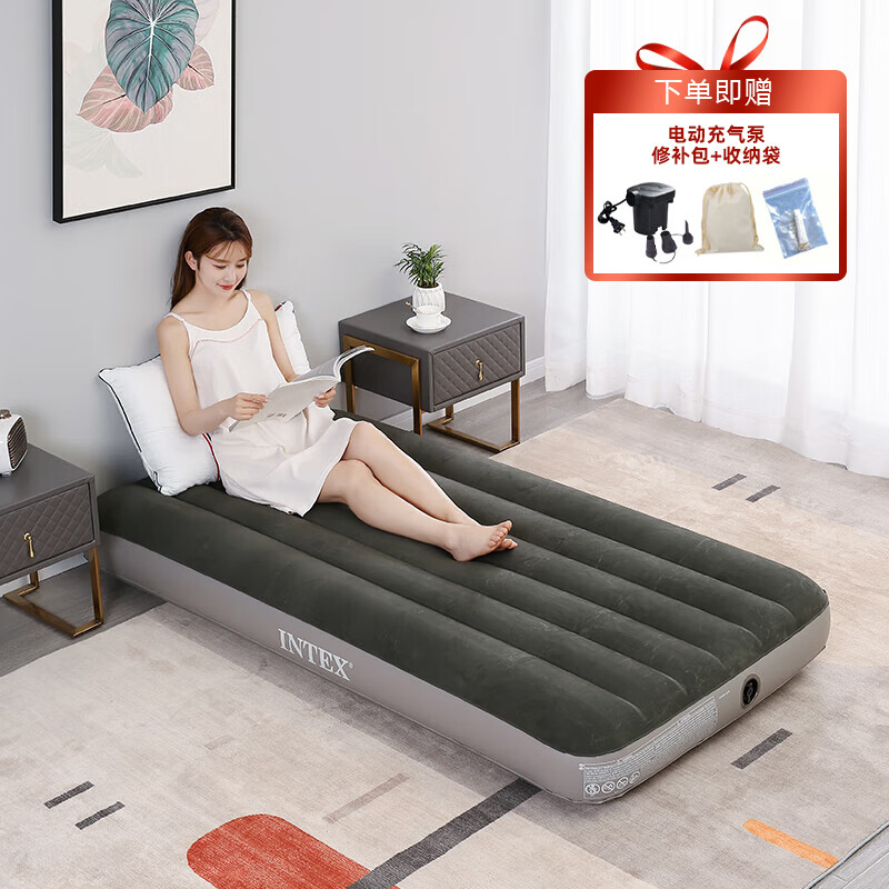 INTEX 64107充气床垫露营户外防潮垫 陪护午睡躺椅单人加大折叠床玩具价格:129.00元!
