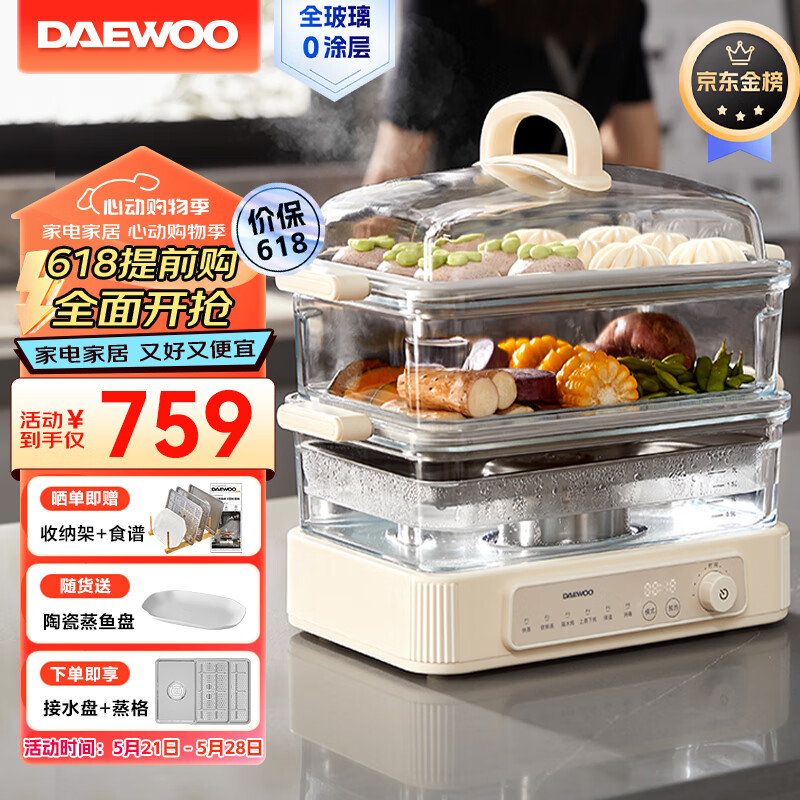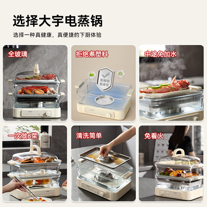 大宇(DAEWOO)电蒸锅 玻璃蒸锅电蒸锅炖蒸煮一体 不锈钢多功能大容量家用可视多层预约早餐定时炖汤S22价格:799.00元!