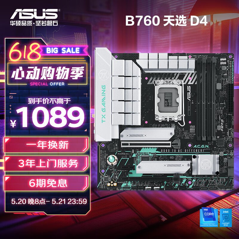 华硕(ASUS)TX GAMING B760M WIFI D4 天选主板 支持 CPU 13700K/13600KF/13400F(Intel B760/LGA 1700)价格:1089.00元!