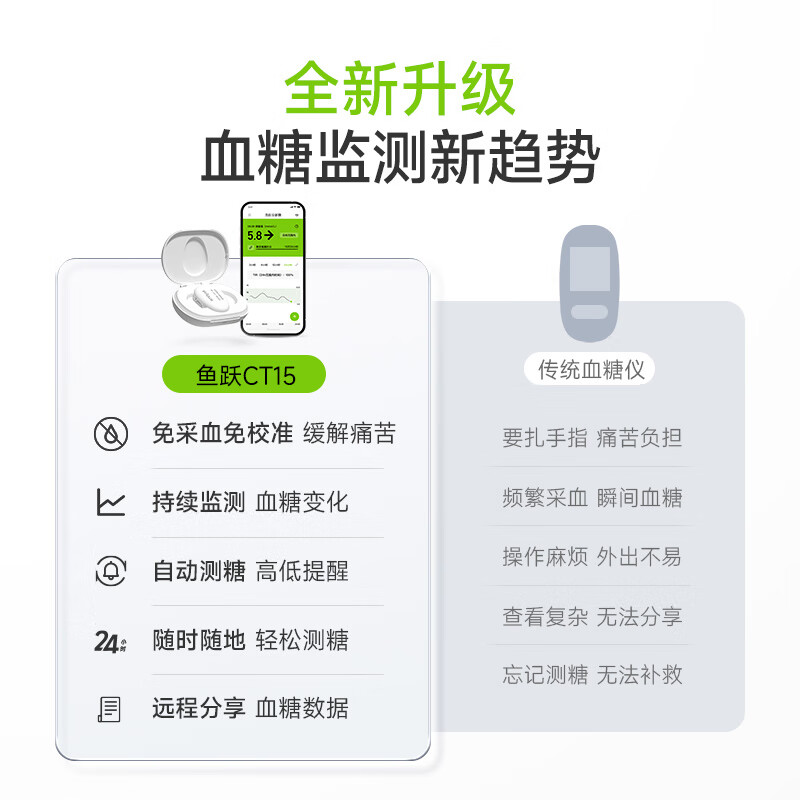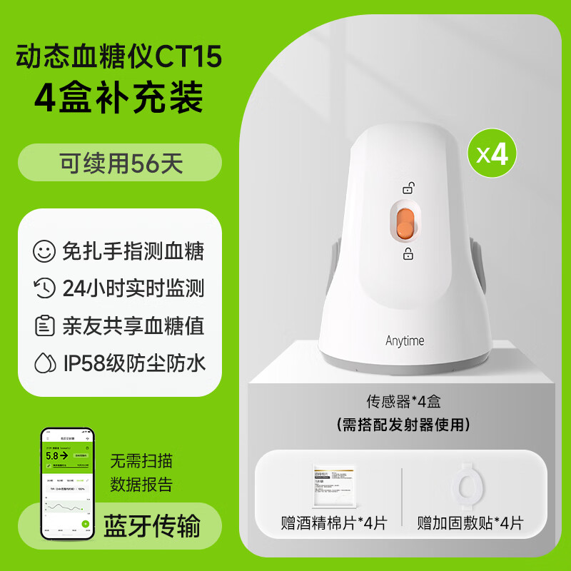 鱼跃(Yuwell)安耐糖动态血糖监测仪CT15 传感器4只装(不含发射器)价格:1249.00元!