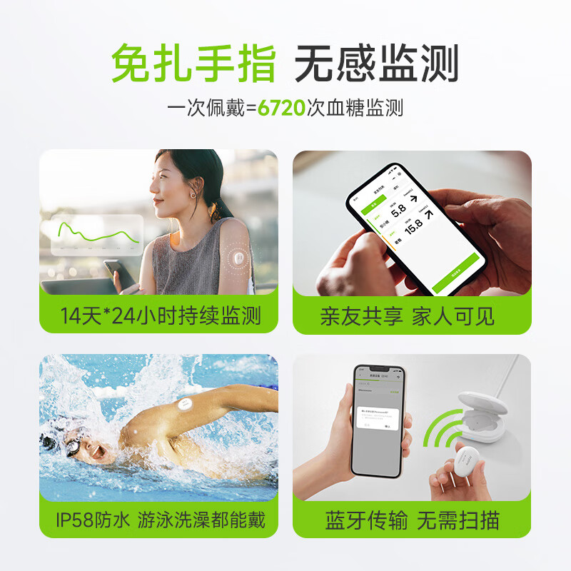 4、医生要求自测两个星期血糖,幸好有这款动态血糖仪,免去每天扎手指痛苦,佩戴方便,app也好用,贴在身上一点也没影响,好评!