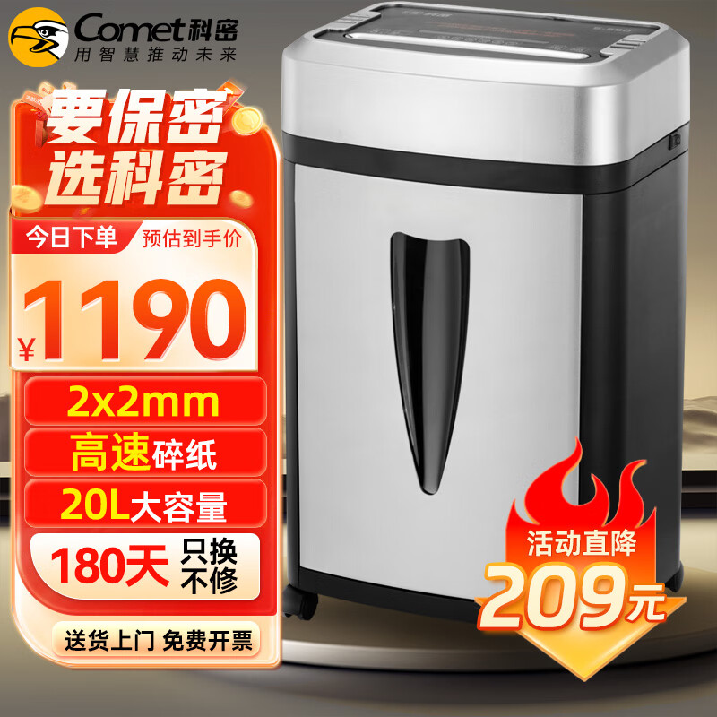 科密(comet) 高速高保密办公商用碎纸机 文件粉碎机(2X2mm粉尘级 3.5m/min高速碎纸)G505价格:1399.00元!