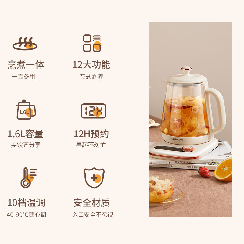 乐扣乐扣养生壶1.6L 煮茶壶 电热水壶办公室煮茶器家用花茶壶电水壶煮茶器玻璃烧水壶价格:139.00元!