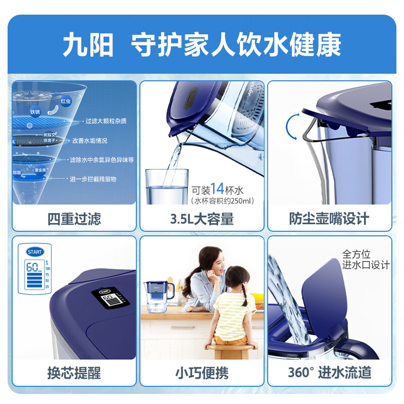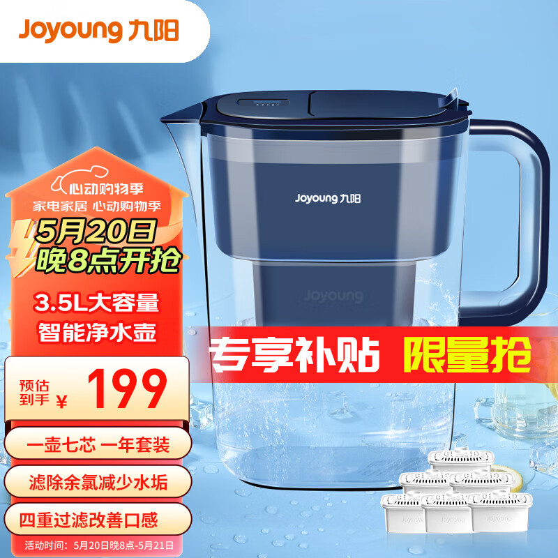 九阳(Joyoung)滤水壶 过滤净水器 家用净水壶 JYW-B05(1壶7芯套装)价格:189.00元!