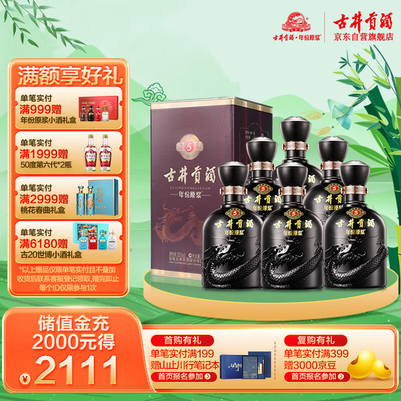 古井贡酒年份原浆 古5 浓香型白酒 55度500ml*6瓶 整箱装价格:1058.82元!