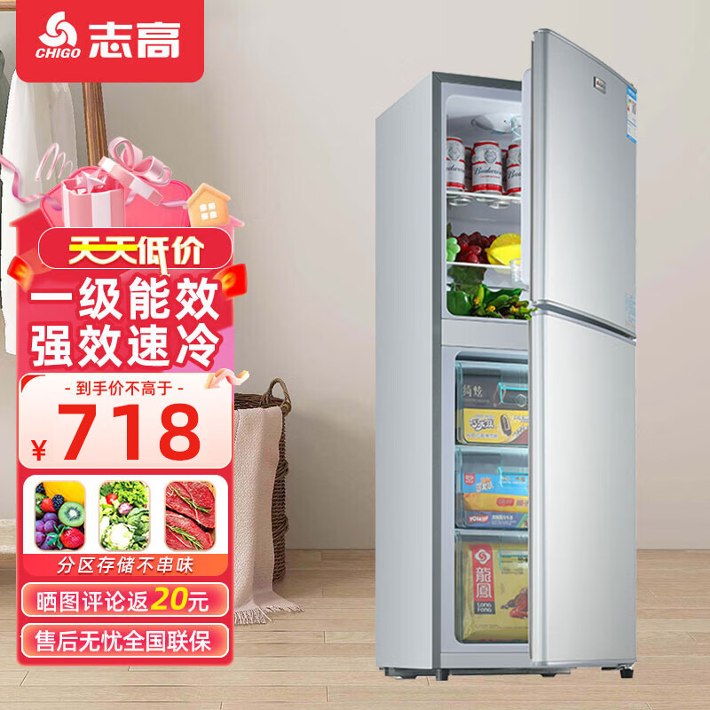 志高(CHIGO)177升两门小冰箱租房宿舍办公室家用双温可冷冻冷藏节能环保省电低耗低音电冰箱BCD-177D价格:738.00元!