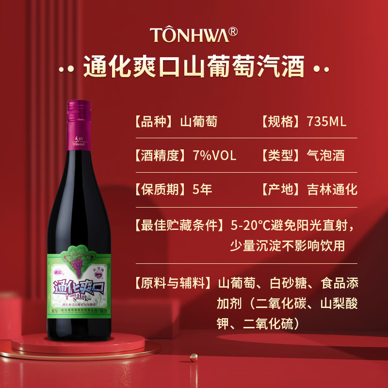 通化 1937 大爽口 山葡萄加汽甜红葡萄酒7%vol 735ml 单瓶装价格:35.00元!
