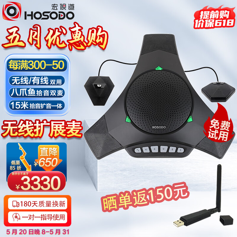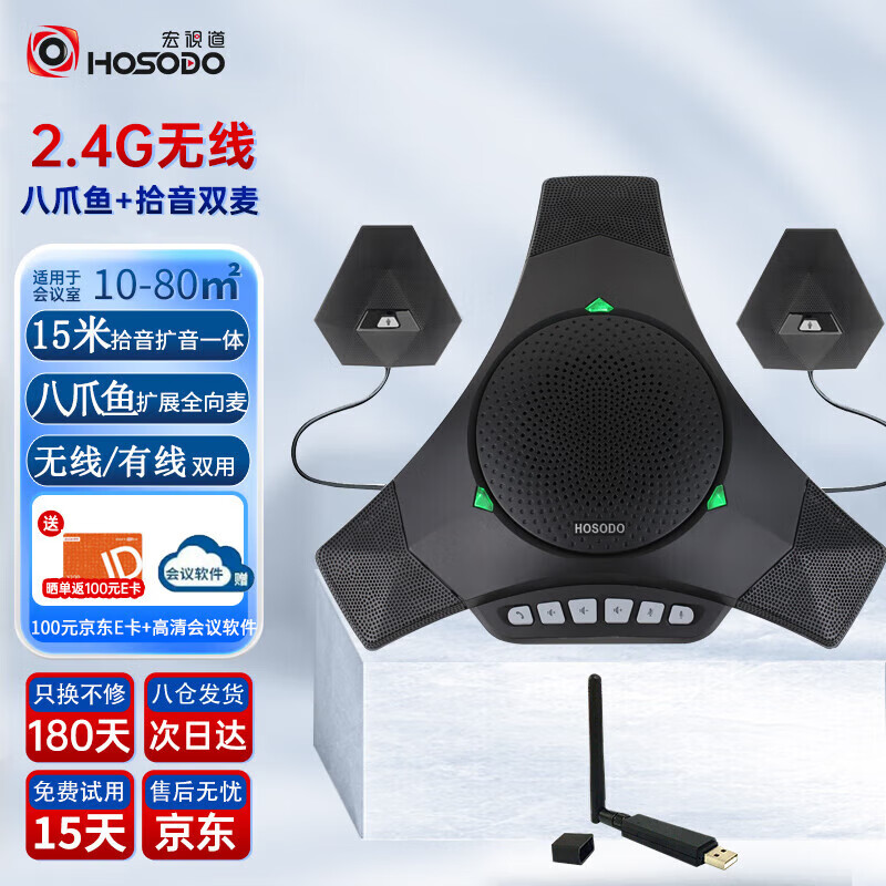 宏视道视频会议无线2.4G全向麦克风MC810W-EX(无线USB免驱+一拖二扩展联)适合20-80㎡会议室价格:3980.00元!
