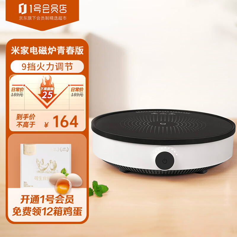 小米(MI)米家电磁炉青春版2100W大功率9档变频控温煎炒煮炸蒸烧水双重防滑圈可拆卸高温保护价格:159.00元!