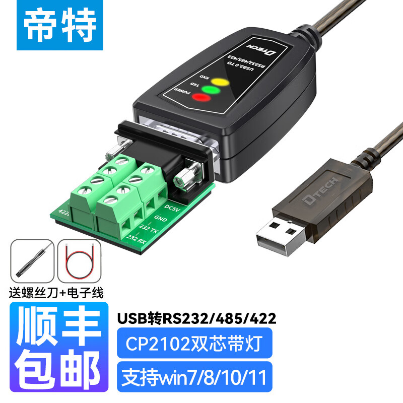帝特USB转RS232/422/485串口线 plc调试线电脑COM口9针通讯转接线适用考勤机条形码机 0.5米DT-5019C价格:188.00元!