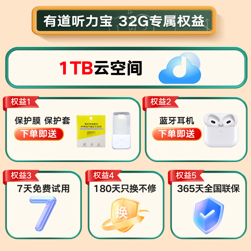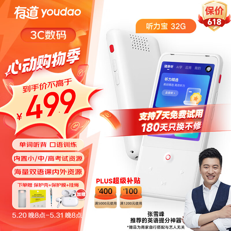 有道英语听力宝 复读机英语听力学习机随身听单词记背磨耳朵神器 听力训练小学初中高中学生听力机32G价格:549.00元!