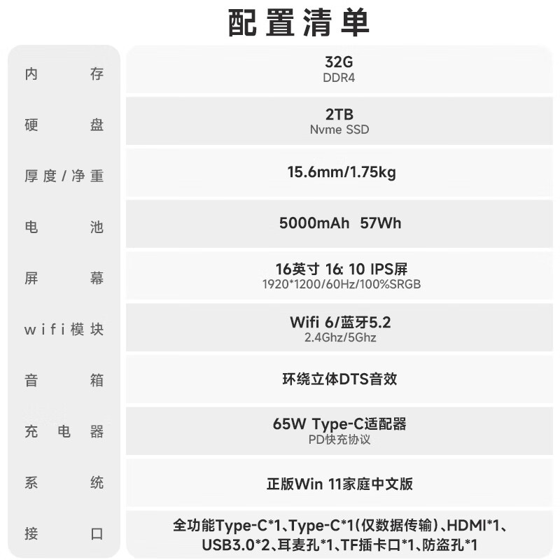 特性:大内存(16GB及以上),长续航,Wi-Fi6