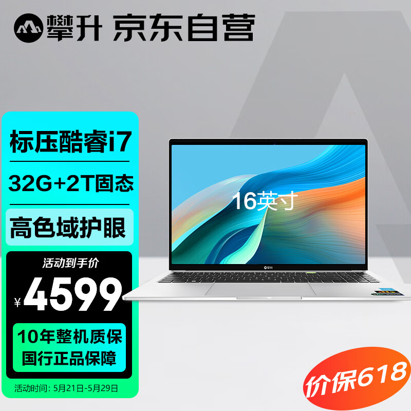 攀升笔记本电脑高性能轻薄本16英寸暴风龙P3 学生电脑笔记本游戏本 (英特尔酷睿i7 32G 2T护眼屏)价格:4599.00元!