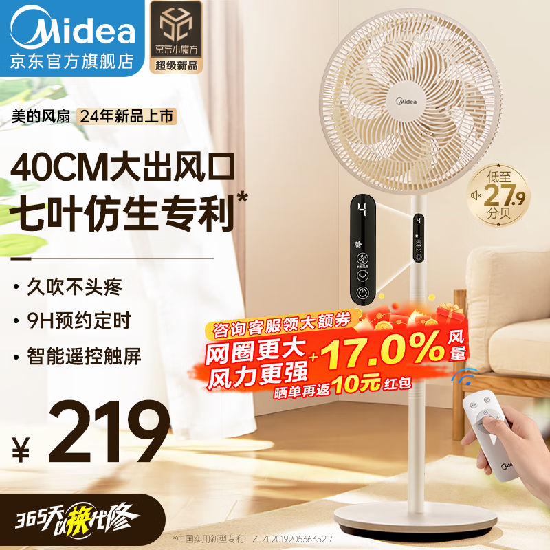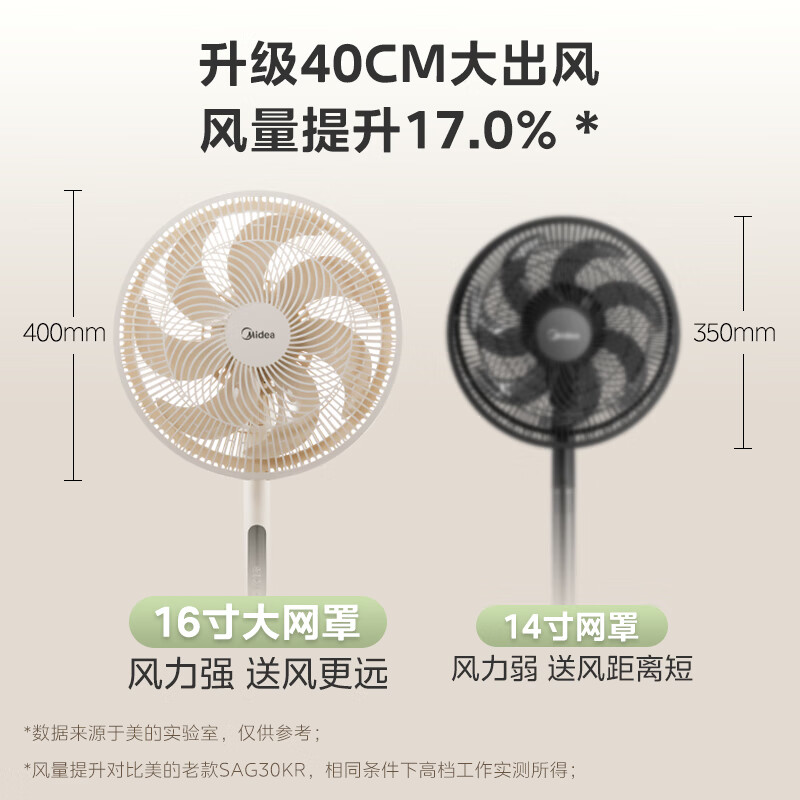 美的(Midea) 电风扇落地扇家用大风量空气循环电扇宿舍轻音低噪智能扇 【仿生7叶专利 遥控定时】重磅上市SAH35MKL价格:329.00元!