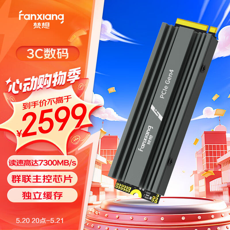 梵想(FANXIANG)4TB SSD固态硬盘 M.2接口(NVMe协议 PCIe 4.0×4) 独立缓存PS5拓展 S800读速高达7300MB/s价格:2599.00元!