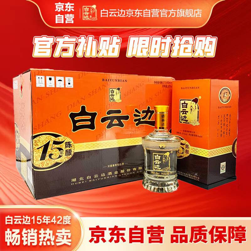 白云边 十五年陈酿 浓酱兼香型白酒 42度 450ml*6瓶 整箱装(含礼品袋)价格:785.50元!