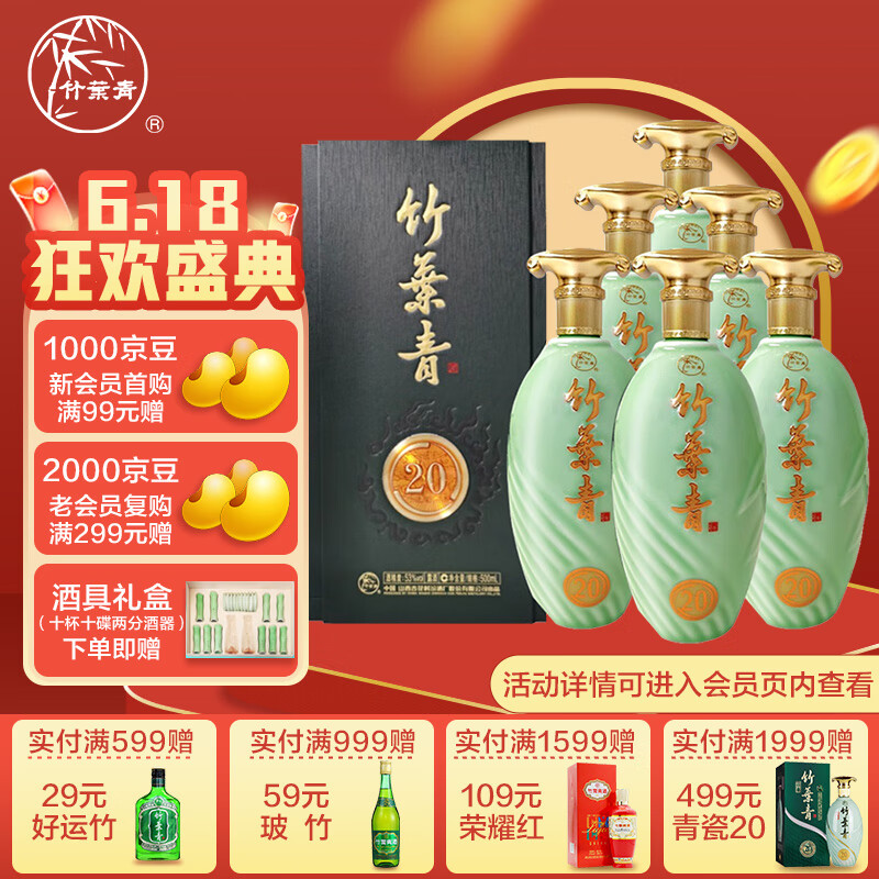 竹叶青酒 山西杏花村汾酒 露酒 青享20版 53度500ml*6瓶 箱装【送礼】价格:2588.00元!