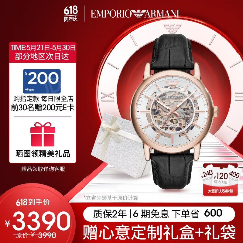 安普里奥·阿玛尼(Emporio Armani)手表男士经典表皮带镂空机械表520情人节礼物送男友AR60007价格:3990.00元!