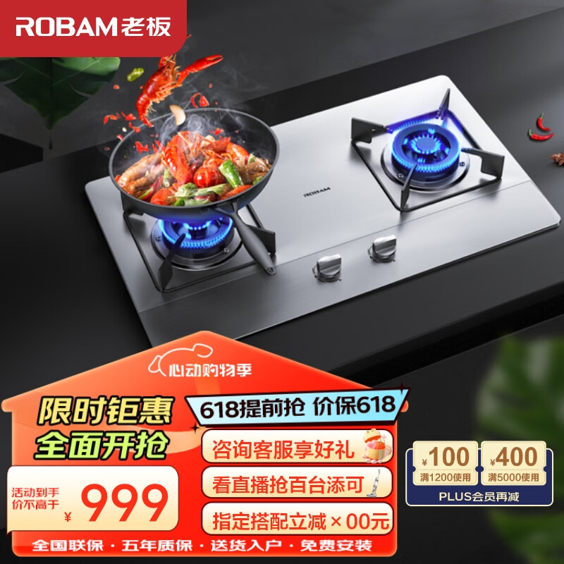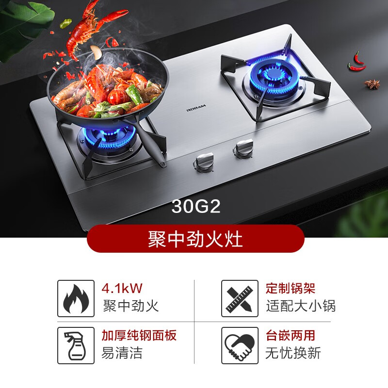 老板 Robam JZY-30G2燃气灶 4.1kW嵌入式燃气灶具 家用不锈钢台嵌两用式灶具 聚中劲火(液化气)价格:999.00元!
