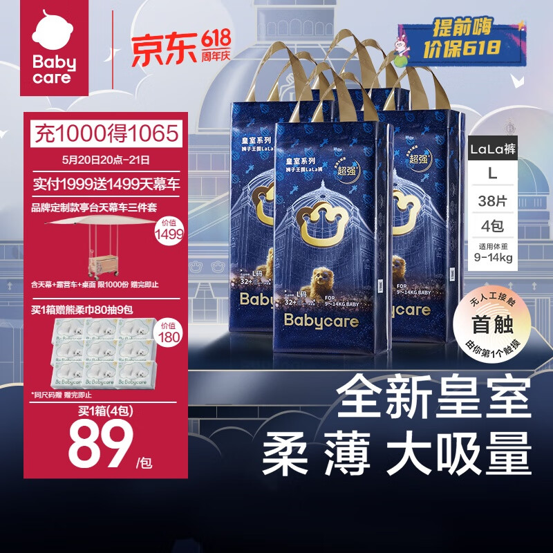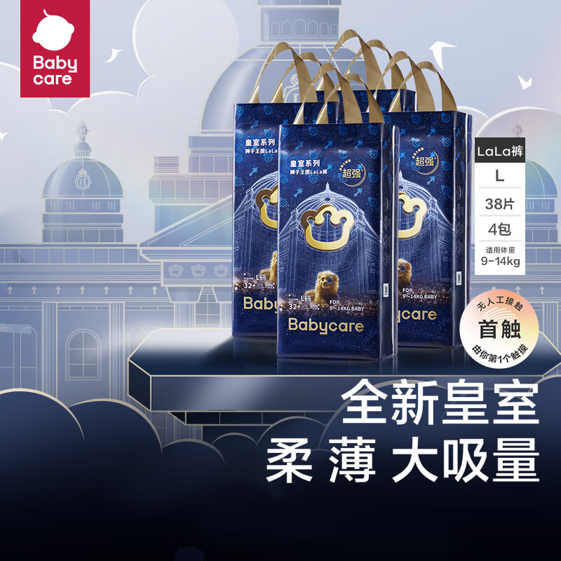 babycare皇冠LaLa裤皇室狮子王国拉拉裤婴儿尿不湿箱装L38片*4包9-14kg价格:476.00元!