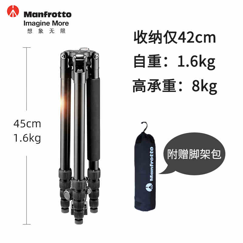 曼富图Element系列大号铝合金三脚架全景球形云台便携户外单反拍摄三脚架价格:599.00元!