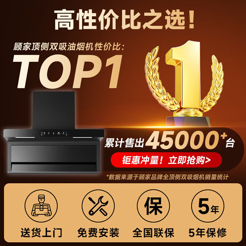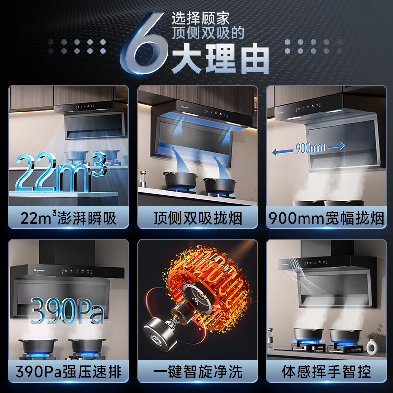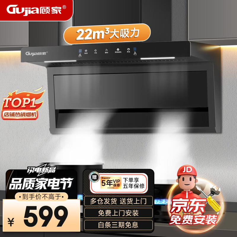 顾家(Gujia)抽油烟机7字型家用顶侧双吸油烟机挥手控制22立方大吸力自清洗CXW-328-G122B价格:1099.00元!