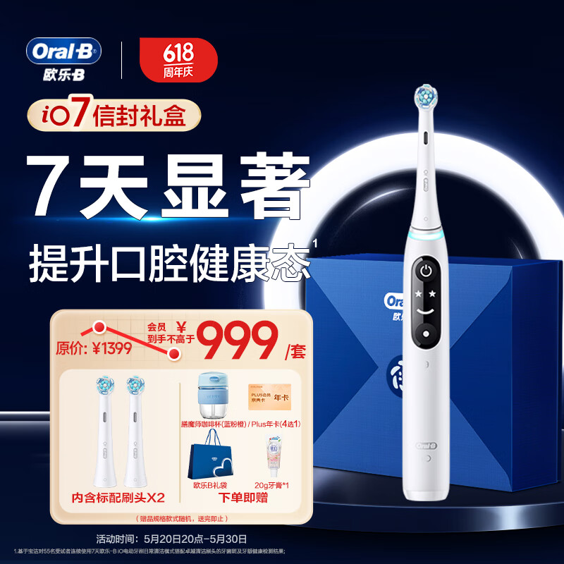欧乐B成人电动牙刷iO7智能可视磁波刷甄选礼盒iO系列微震科技深度清洁牙龈按摩送礼送男友送女友520礼物价格:1149.00元!
