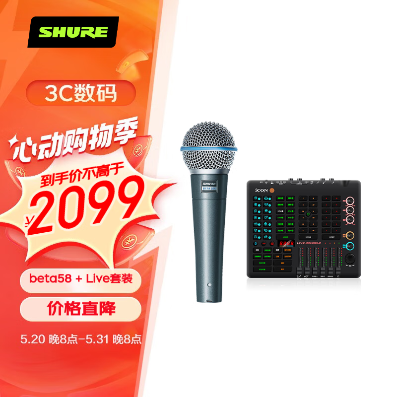 SHUREbeta58 动圈麦套餐 icon Live Console外置声卡电脑主播唱歌直播全套游戏录音麦克风价格:2099.00元!
