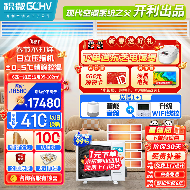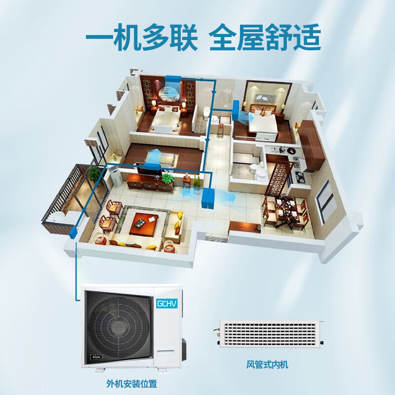GCHV积微中央空调多联机 6匹一拖五 一级能效直流变频冷暖嵌入式风管机空调 适用四室一厅 EC系列价格:17580.00元!