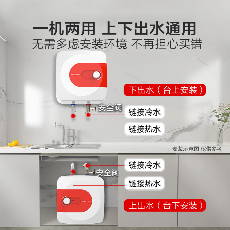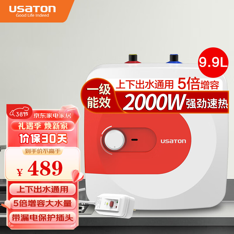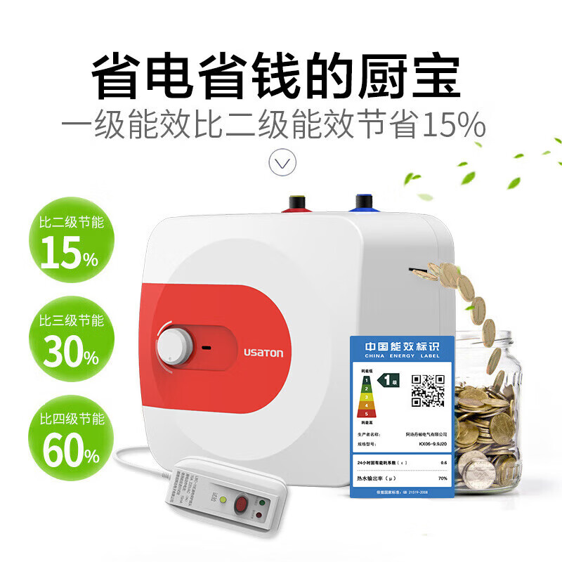 阿诗丹顿(USATON)9.9升小厨宝厨房储水电热水器约10升L一级能效2000W上出水下出水KX06-9.9J20价格:559.00元!
