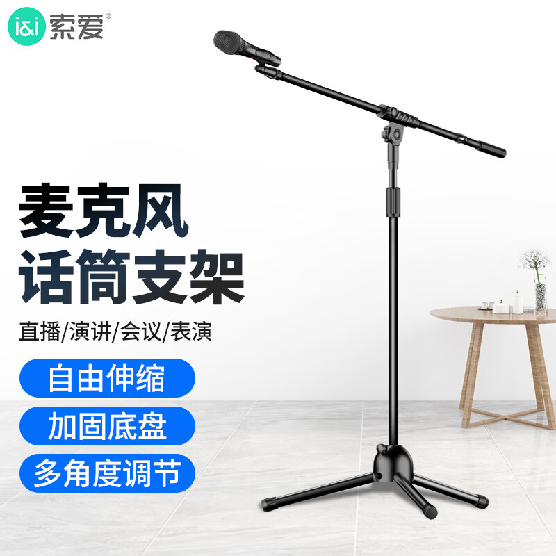 索爱(soaiy)MZ6 麦克风话筒支架话筒架 麦架落地直播钢管管体伸缩三脚架录音舞台支架设备配咪夹(单杆)M9价格:129.00元!